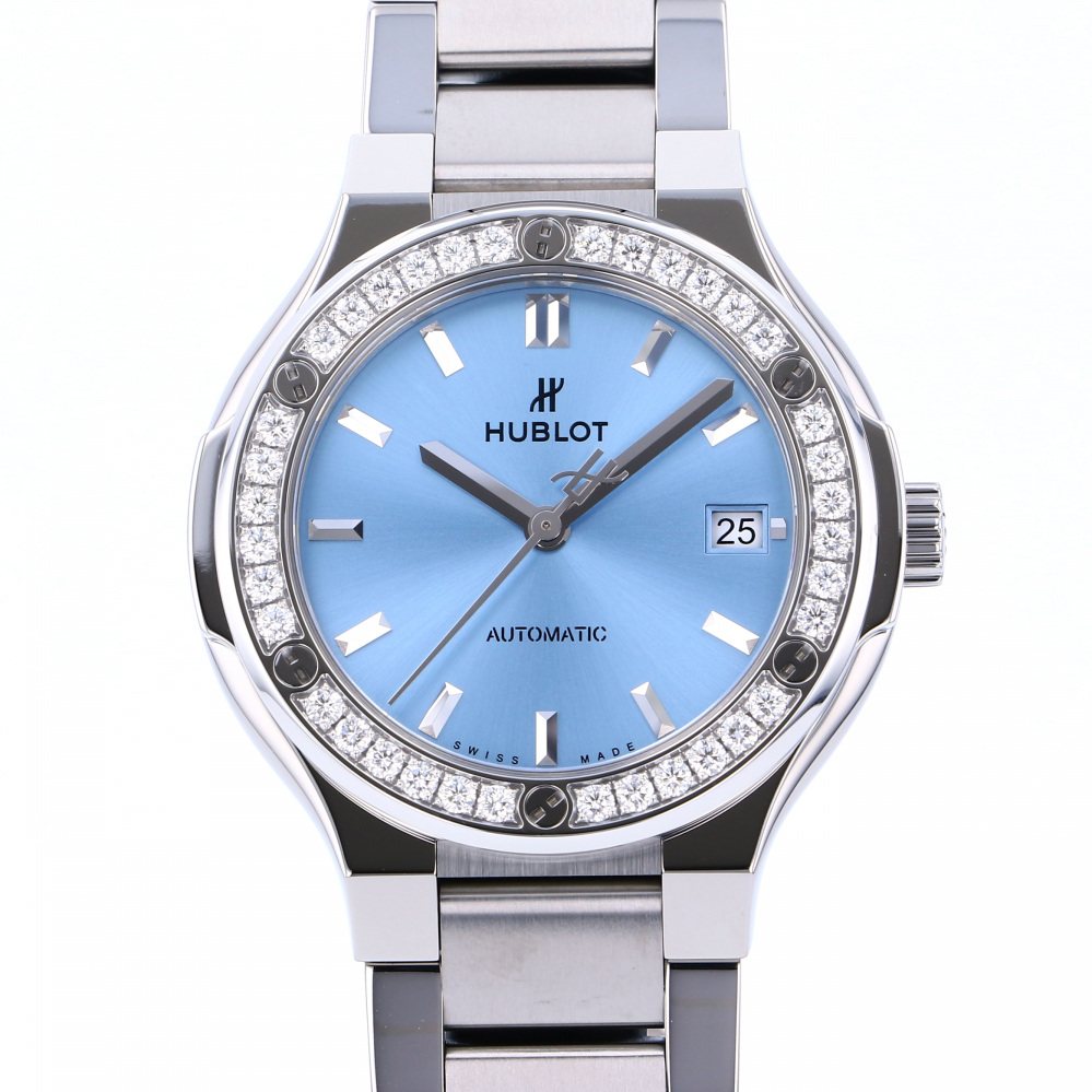 宇舶 HUBLOT 經典融合 鈦金 淺藍色 金鑽 手鍊 568.NX.891L.NX.1204 描述