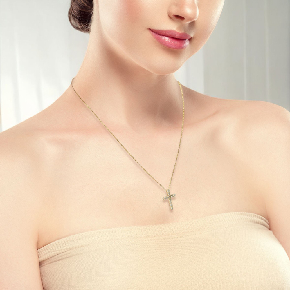 YenK18 Yellow Gold Diamond Cross Necklace Description