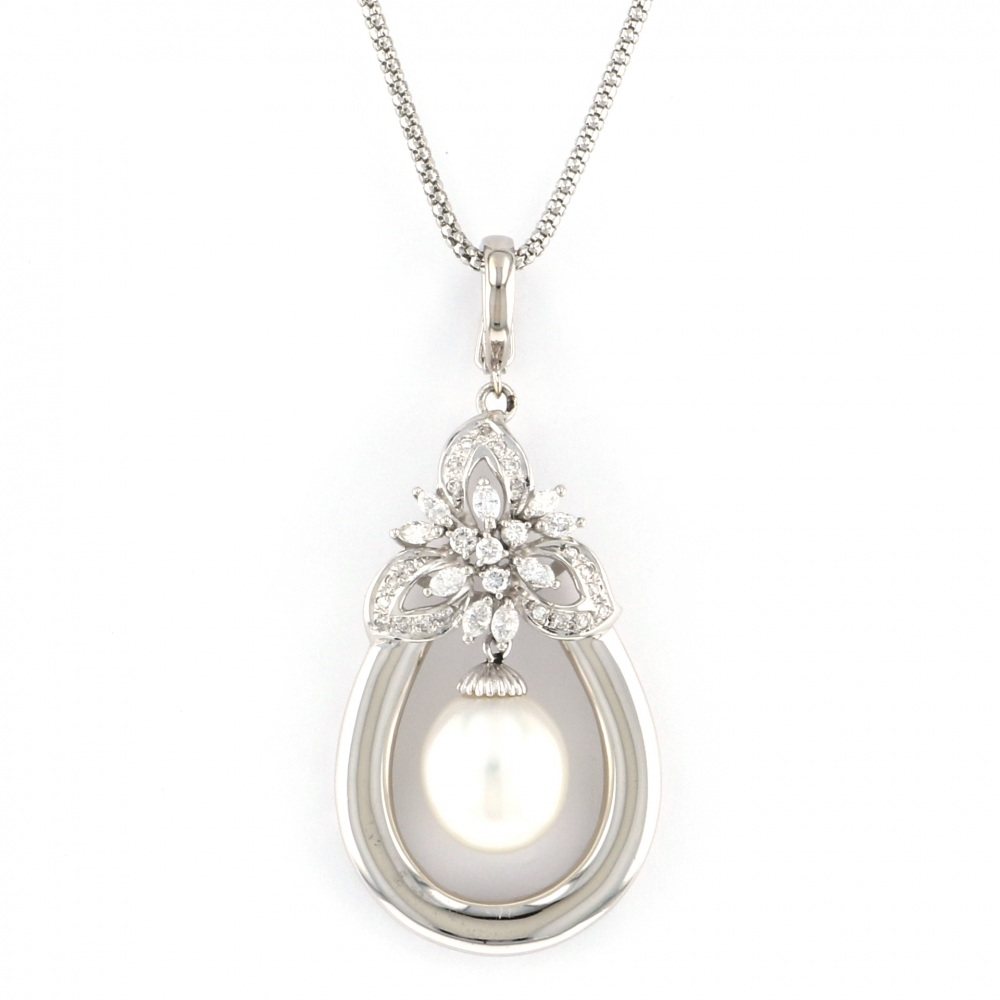 Platinum 900 Platinum 850 White Pearl Diamond Necklace